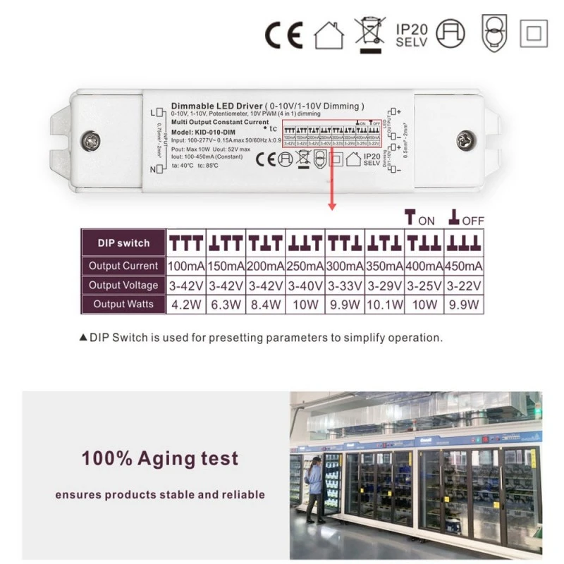 Specifikacije gonilnika za LED s konstantnim tokom 0–10 V Starwell: