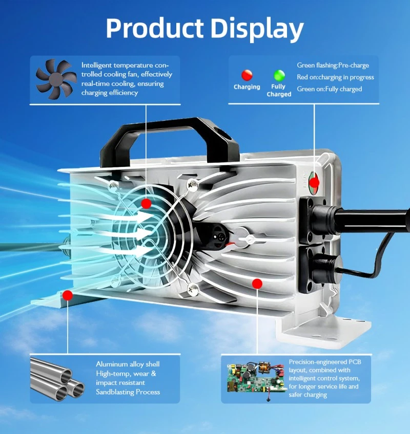 Tovarniški polnilnik baterij STARWELL 1,2kW OBC Onboard Chargers (podrobnosti o modelu: 90–260V AC vhod, 48V DC izhod pri 25A, nazivna moč 1,2kW) zagotavlja visoko zmogljivo in stabilno polnjenje za vozila, pomorsko opremo in industrijske mobilne naprave. Njegovo trpežno ohišje iz aluminijeve zlitine zagotavlja učinkovito odvajanje toplote in dolgotrajno vzdržljivost, zaradi česar je idealen za težka okolja na vozilu.
