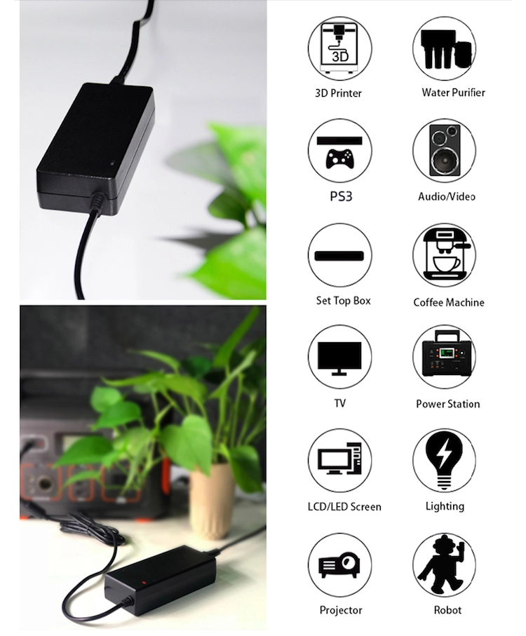 * Več enot za serijo 120 W: 12V/15V/20V/24V/36V/48V na voljo * Varnost: OCP/OVP/OTP, SCP, samodejni preobremenitveni izklop, prenapetostni izklop, samodejni toplotni izklop. * Široka združljivost: LED trakovi, 3D-tiskalnik, radioamaterski oddajnik, CCTV kamere, avtomobilski globokotonski ojačevalnik, avdio ojačevalnik, brezžični usmerjevalnik, ADSL Cats, vlažilnik, HUB, tipkovnica, BT zvočnik, monitor, spletna kamera, DVR, NVR, avdio/video napajalnik
