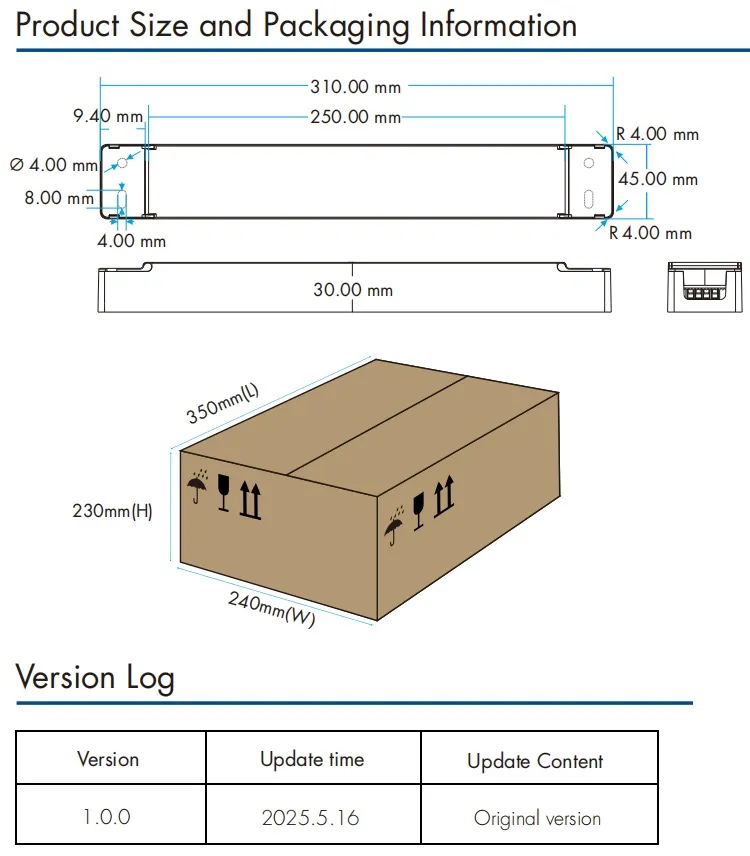 Vmesnik za zatemnitev 0/1-10V zatemnitev: območje zatemnitve 0-10V ali 1-10V, poraba toka priključka za zatemnitev ≤ 0,3 mA, krivulja zatemnitve glejte "Char.curve Slika 6-7", Krivulja CCT se nanaša na "Char. krivulja Slika 8". Zatemnitev s potisnim stikalom: Območje napetosti 220~240VAC 50/60Hz.