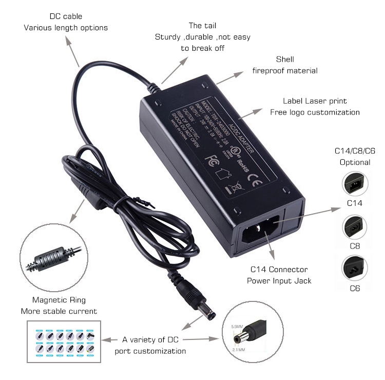 Namizni napajalnik STARWELL 150 W ima standardna vhodna vrata za napajanje IEC C6 in izhodni priključek 5,5*2,1 mm za enosmerni tok—ki služi kot profesionalna rešitev za napajanje visokozmogljivih naprav. Natančnost izhodne napetosti 150 W AC/DC napajalnika je kar ±2 %, učinkovitost pretvorbe moči pa presega 90 %. Prestal je certifikate CE in FCC za zagotavljanje varnosti. Napajalnik STARWELL je idealen za napajanje naprav v pisarni, zabavi in komercialnih scenarijih, je stroškovno učinkovita alternativa originalnim adapterjem ali razširitev za potrebe po napajanju več naprav.