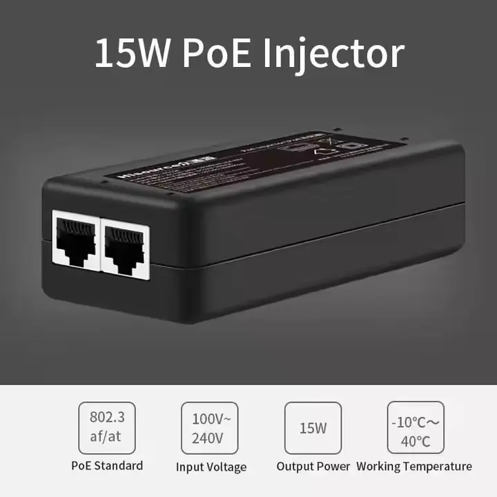 Ta 15 W IEEE 802.3af PoE adapter, ki podpira globalno napetost 100–240 V, deluje po vsem svetu. V kombinaciji s 100-metrskim prenosom PoE omogoča prilagodljivo namestitev in se pogosto uporablja kot stabilen namizni injektor PoE za nadzorne in omrežne sisteme.