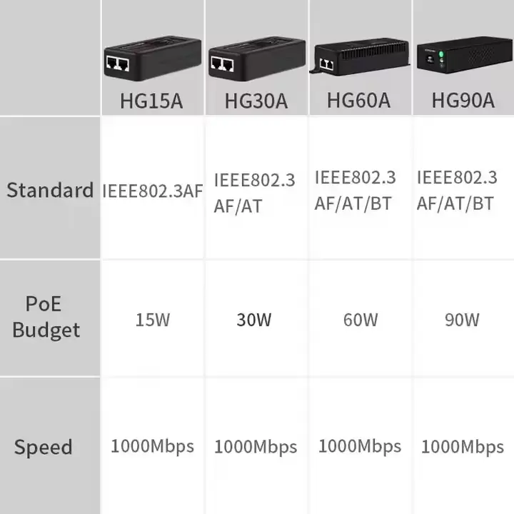 Strogo skladen z IEEE 802.3af, ta 15 W PoE injektor zagotavlja stabilno moč 48 V 15 W za različne naprave PoE. Standardizirana zasnova zagotavlja varno, zanesljivo napajanje in močno združljivost kot profesionalni namizni adapter PoE.
