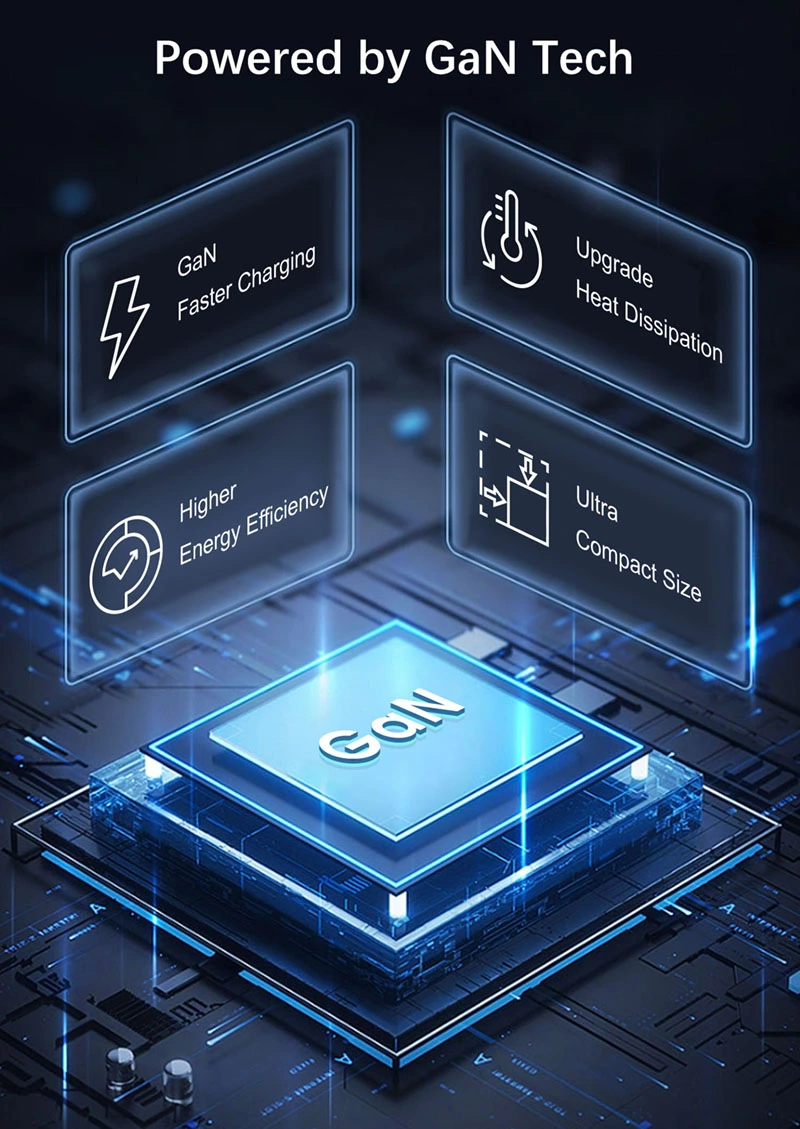 Hitro polnjenje: 200 W izvlečni hitri polnilnik GAN se ponaša z zmogljivo izhodno močjo 200 vatov, kar zagotavlja hitro polnjenje vaših naprav.