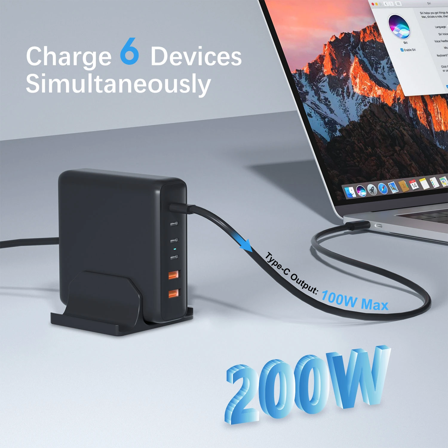 200 W namizni polnilnik PD s 6 vrati tipa c, hitri polnilnik GAN 200 W, ki ga proizvaja Shenzhen Starwell Technology Co., Ltd. Kitajski proizvajalec z visoko kakovostjo po dostopnih cenah.