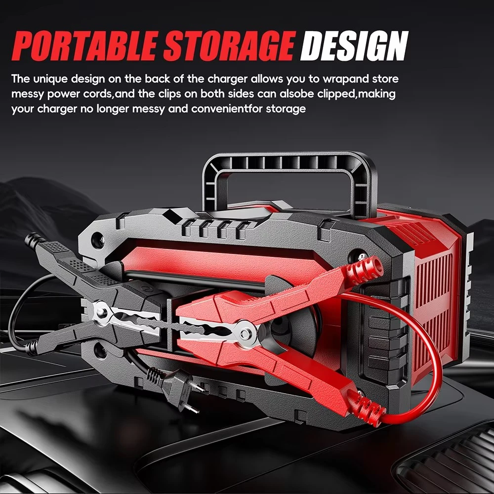 Široka združljivost baterije Podpira vse glavne svinčeno-kislinske kemikalije – preplavljene, gelne, brez vzdrževanja, AGM in LiFePO₄ (litijev železov fosfat) – deluje s starter baterijami, baterijami z globokim ciklom, ladijskimi baterijami in baterijami powersport. En polnilec pokriva skoraj vse v vaši garaži ali delavnici.
