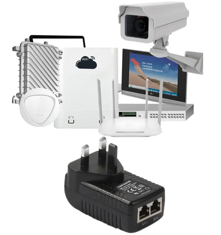 Ta 24V 1A POE stenski adapter podpira izhod 24V 1A in 48V 0,5A, kar ustreza različnim napravam 24V in 48V POE. Zasnova vbrizgalnika POE z dvojnimi vrati omogoča napajanje dveh naprav hkrati, kar močno izboljša prilagodljivost in učinkovitost namestitve.