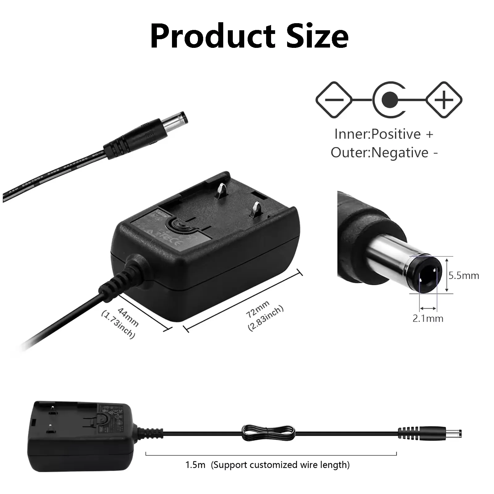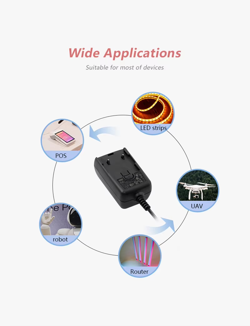 Širok nabor scenarijev uporabe: Ne glede na to, ali gre za napajanje LED svetlobnih trakov, pametnih zvočnikov, omrežnih usmerjevalnikov ali drugih majhnih električnih naprav, je ta močan napajalnik z izmenljivim vtičem Switching vaša najbolj idealna in pomirjujoča izbira!