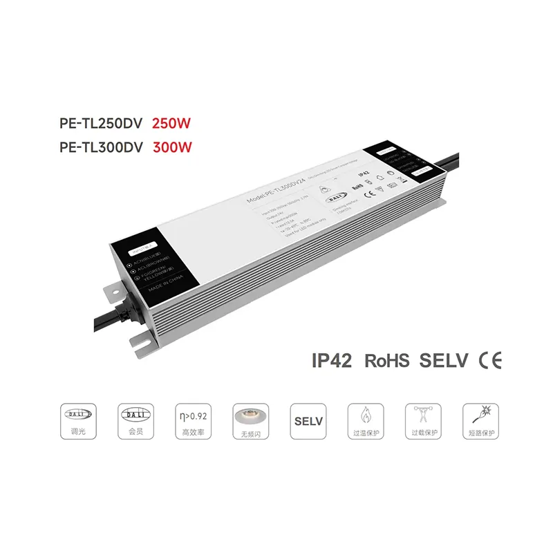 Visokokakovosten 250 W Constnat Current DALI Dimmable LED gonilnik tovarne Starwell je visoko zmogljiva napajalna rešitev, zasnovana za profesionalne sisteme LED razsvetljave, ki zagotavlja stabilen izhod 24 V DC z gladkim zatemnitvijo brez utripanja prek protokola DALI-2. V skladu s standardi IEC 62386 podpira 0-100 % linearno zatemnitev, kar zagotavlja brezhibno združljivost s krmilniki DALI in sistemi za upravljanje razsvetljave za komercialne, industrijske in arhitekturne aplikacije.