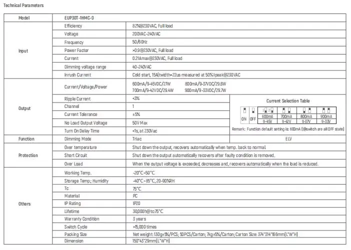 Kot profesionalni proizvajalec in dobavitelj gonilnikov za led na Kitajskem je naš 30 W triac zatemnitveni gonilnik LED s konstantnim tokom naprava za pretvorbo moči, zasnovana posebej za srednje do visoko zmogljive sisteme LED razsvetljave. Sprejema napredno tehnologijo za nadzor konstantnega toka, da zagotovi stabilno delovanje kroglic LED pri nazivnem toku, učinkovito podaljša življenjsko dobo žarnice in izboljša doslednost svetlobne učinkovitosti. Gonilnik za zatemnitev s konstantnim tokom je primeren za scenarije razsvetljave z velikimi zahtevami, kot so komercialna razsvetljava, industrijska razsvetljava, zunanji reflektorji in luči za rast rastlin.