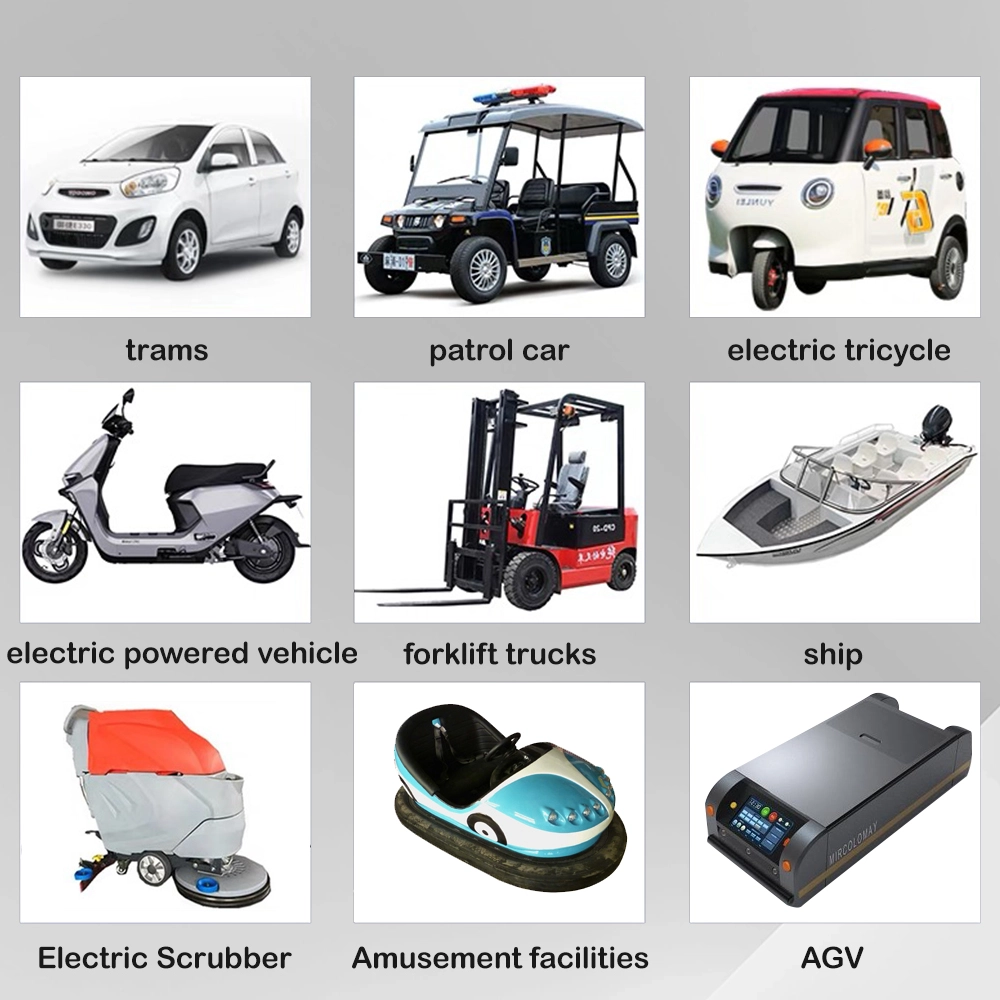 Aplikacije izdelkov Električni odbijači in zabaviščne vožnje Vozila za ogled znamenitosti in vozički za golf Patruljna vozila in varnostni vozički Viličarji in oprema za ravnanje z materialom Stroji za pomivanje tal in čistilni stroji Avtomatsko vodena vozila (AGV) za skladišča Električne ladje, čolni in pomožna plovila