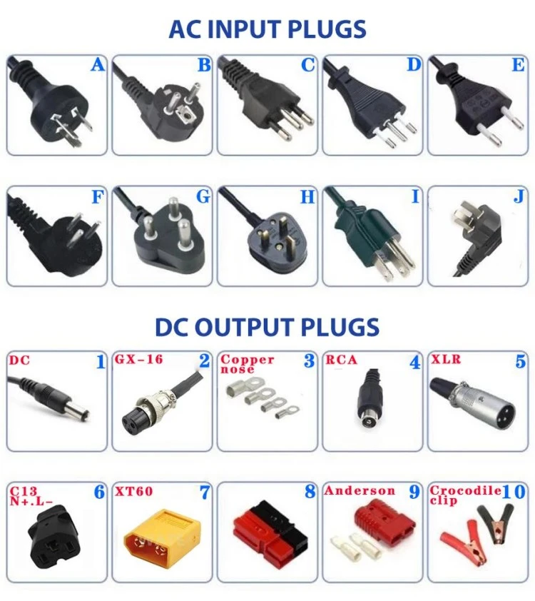 Zaščita pred izgorevanjem: temperatura polnilnika presega omejitev. Polnjenje bo zmanjšalo obremenitev z električno energijo. Temperatura okolja preseže 65 ℃, polnilec bo prenehal polniti in preklopil v stanje pripravljenosti, dokler se temperatura okolja ne zniža. Zaščita za obrnjeno povezavo baterij: tokokrog znotraj polnilnika se izklopi z baterijami, ko so baterije obrnjene in ne poškoduje polnilnika. Zaščita brez obremenitve: ni izhoda, ko baterije niso priključene. Zaščita pred kratkim stikom: tokokrog znotraj polnilnika se izklopi z baterijami, ko pride do kratkega stika na izhodu. Polnilnik se bo začel polniti šele po odpravljanju težav in ponovnem zagonu polnilnika. Samodejni izklop pri popolnem polnjenju: Polnjenje se samodejno izklopi, ko je baterija popolnoma napolnjena v skladu s presojo polnilnika. |