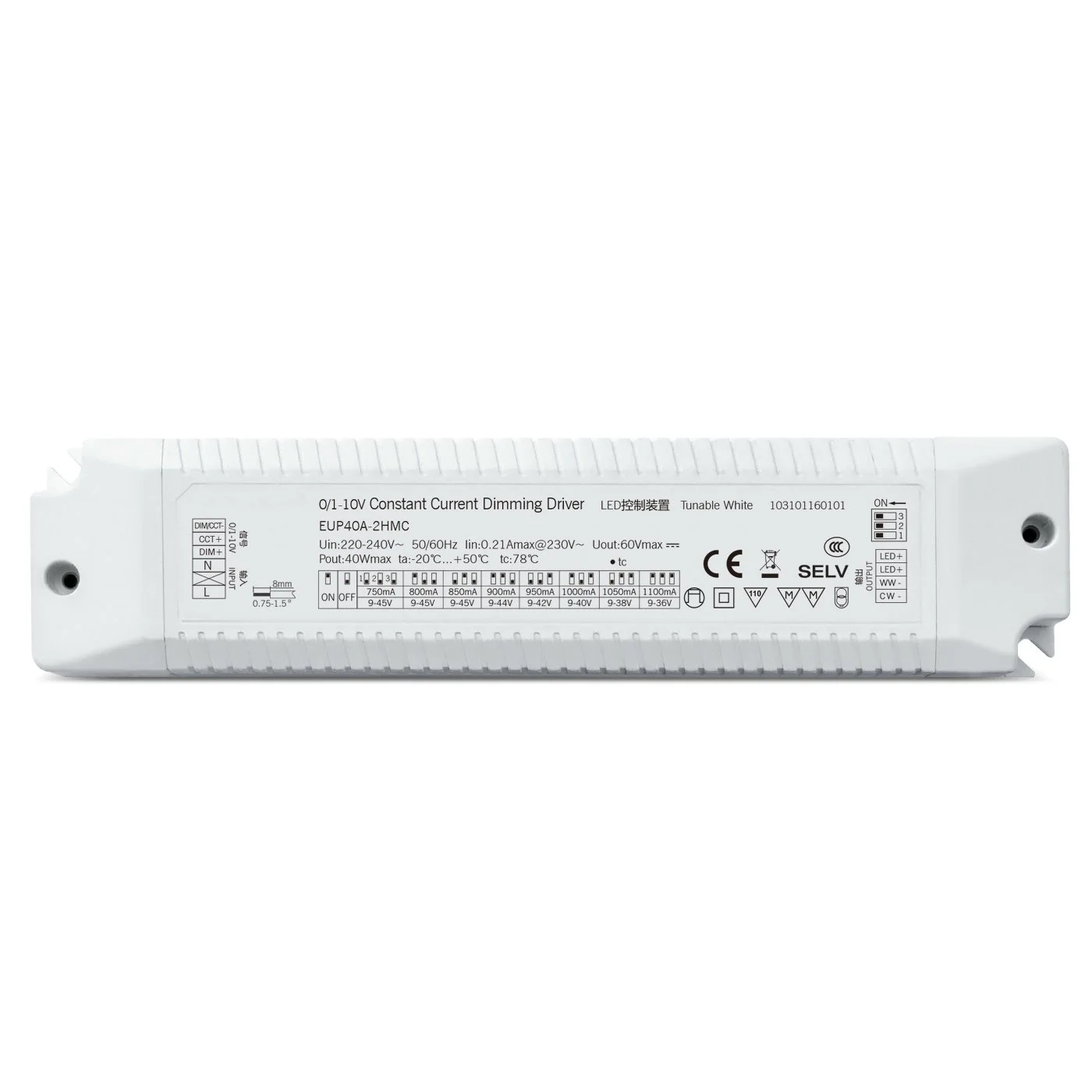Classy 40W 0-10V konstantni tok CCT zatemnjen Led gonilnik je primeren za komercialno razsvetljavo, vrhunske domove, muzeje, hotele in druge scenarije z visokimi zahtevami glede kakovosti svetlobe in dinamičnega nadzora ter je idealna rešitev gonilnika za doseganje inteligentne in energetsko varčne razsvetljave. Ta gonilnik LED s konstantnim tokom 40 W 0–10 V CCT z možnostjo zatemnitve združuje visoko učinkovitost, prilagodljiv nadzor in odlično delovanje ter v celoti izpolnjuje sestavljene zahteve sodobnih sistemov osvetlitve LED za natančno zatemnitev in upravljanje barvne temperature.