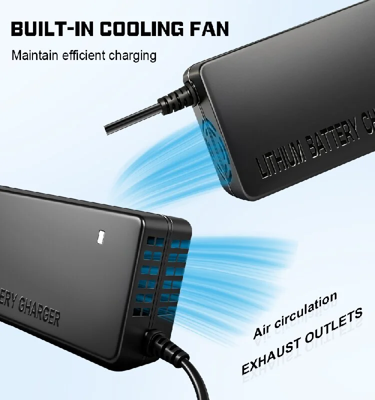 Polnilnik, opremljen z vgrajenim mikroračunalniškim upravljalnim čipom, v realnem času spremlja napetost baterije in temperaturna nihanja. Deluje v povezavi s sistemom za upravljanje baterije (BMS), da zagotovi, da proces polnjenja ostane varen in nadzorovan, s čimer v celoti izpolnjuje stroge zahteve litij-ionskih baterijskih paketov.