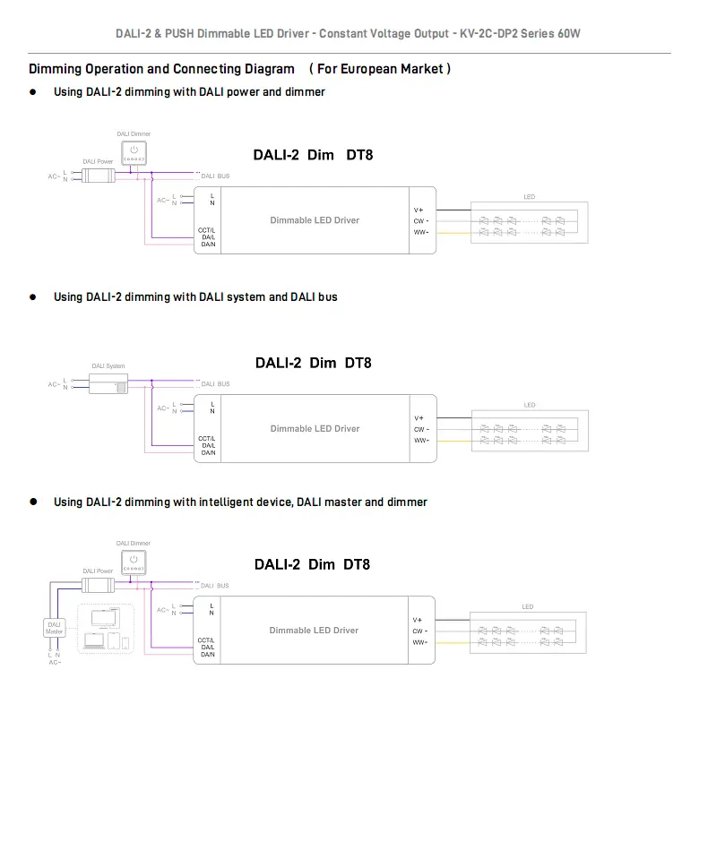 Gonilnik LED za zatemnitev DALI CCT s konstantno napetostjo 60 W