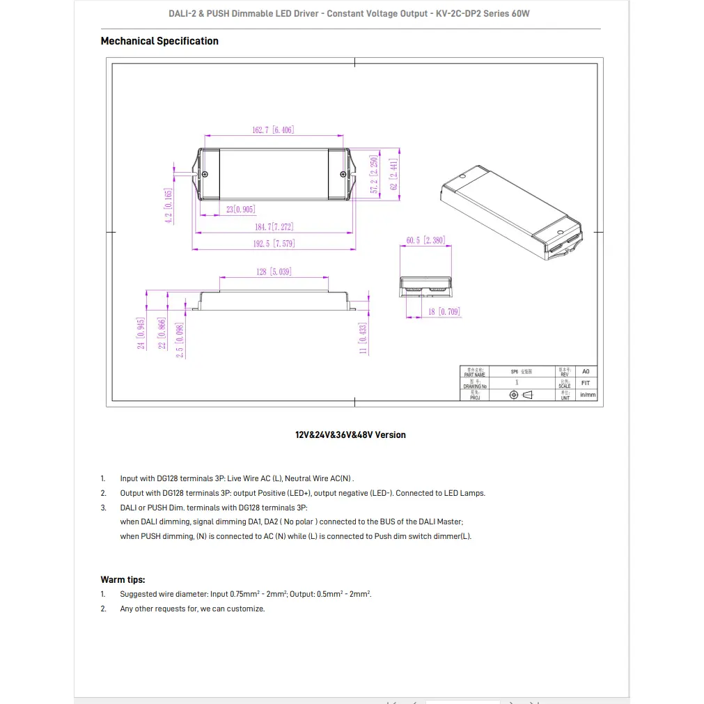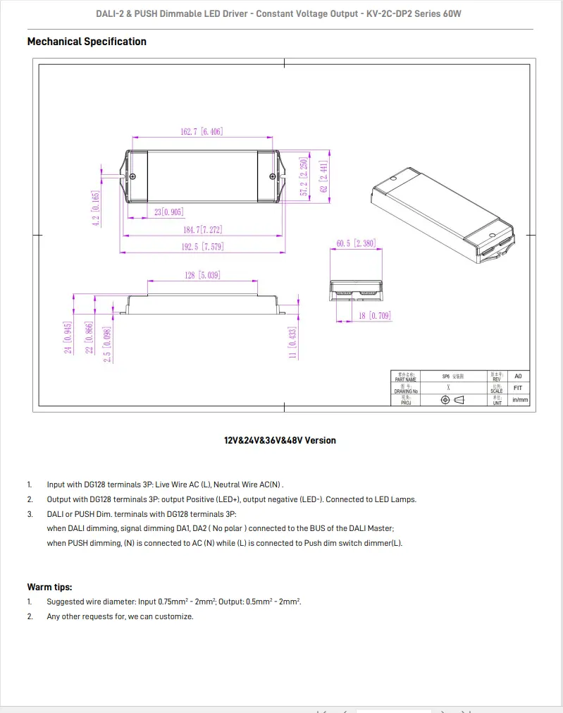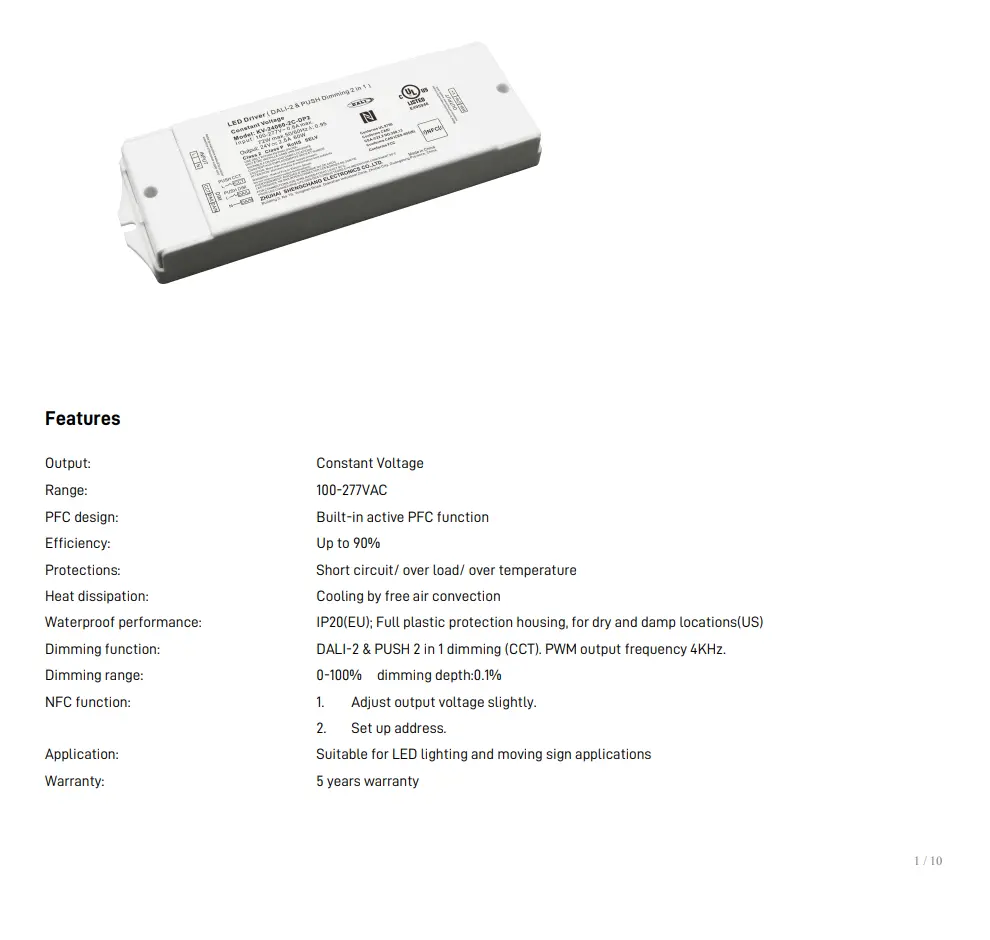 Funkcija zatemnitve: DALI-2 & PUSH 2 v 1 zatemnitev (CCT). Izhodna frekvenca PWM 4KHz.