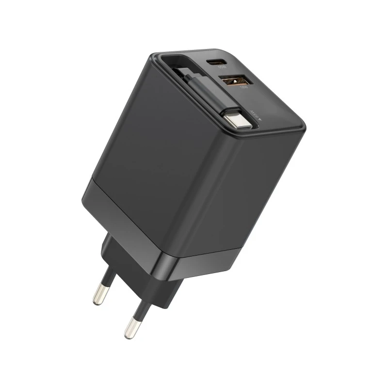 Ena vrata USB-C zagotavljajo največjo moč za hitro polnjenje vašega prenosnika, pametnega telefona, tablice in drugih bistvenih naprav. Vsestranski, zložljivi ameriški vtič zagotavlja eleganten, žepu prijazen profil, medtem ko so zamenljivi vtiči (ZDA, EU, Združeno kraljestvo) na voljo za izpolnjevanje različnih regionalnih standardov, vsi s popolnim certifikatom za varno in zanesljivo uporabo po vsem svetu.