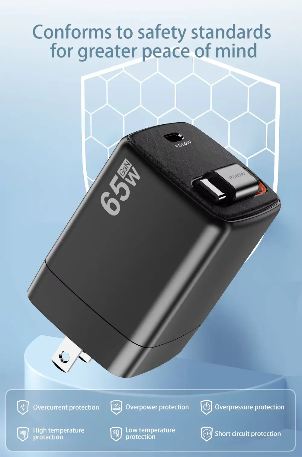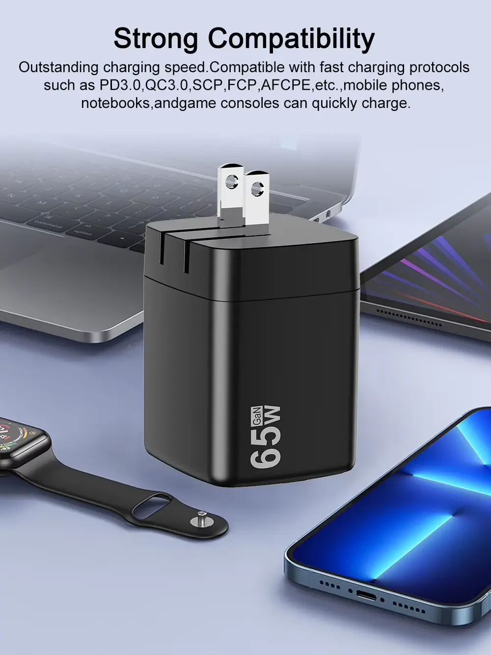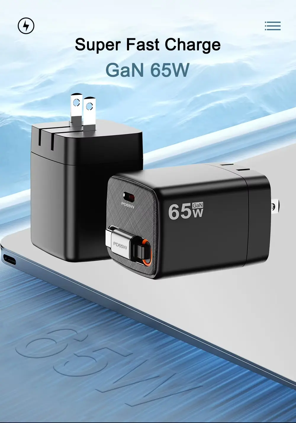 Prilagodljiv logotip Mini 65 W PD Gan USB C polnilnik zložljiv ameriški vtič USB potovalni adapter polnilnik za telefon |