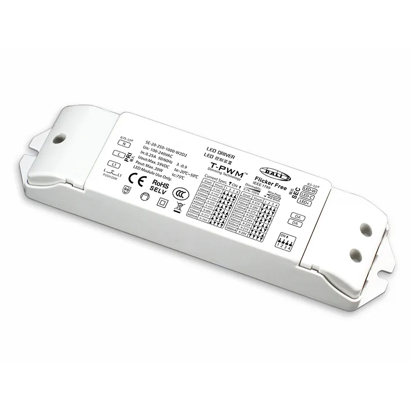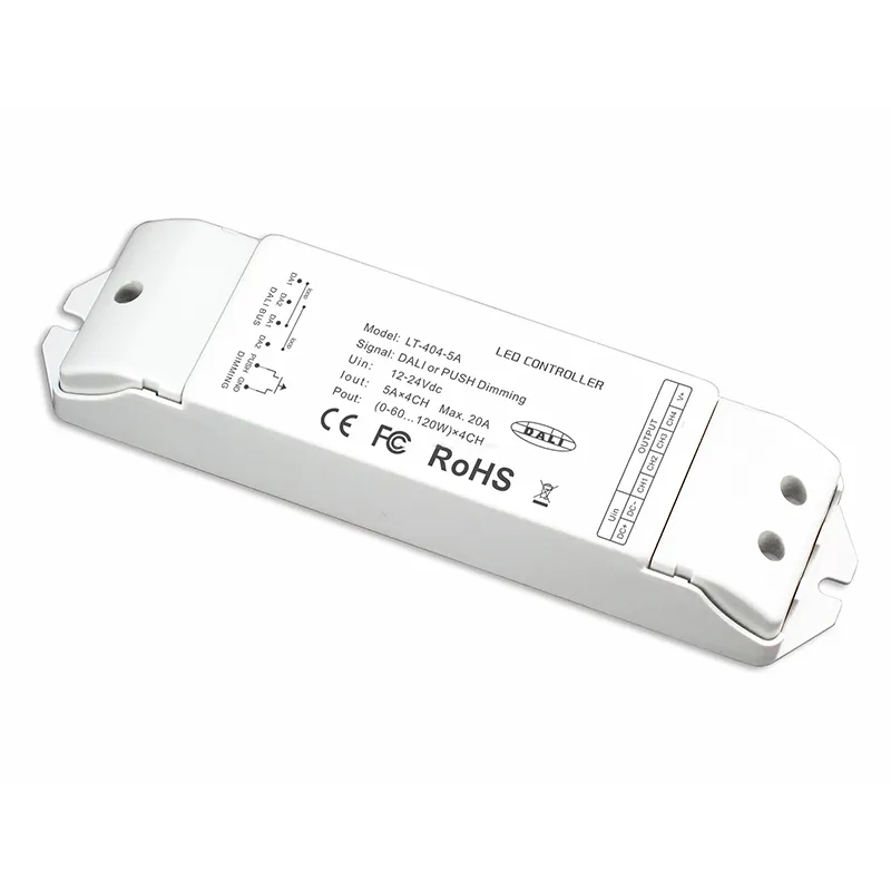 Ta gonilnik DALI LED ima konstantno izhodno napetost 12 V ±2 %, ki zagotavlja enakomerno osvetlitev brez utripanja. Sprejema univerzalno območje vhodne napetosti 100–240 V AC, zaradi česar je primeren za globalno uporabo. Naprava deluje z visoko učinkovitostjo do 90 %, kar zmanjšuje izgubo energije in proizvodnjo toplote. Vključuje popolno zaščito pred kratkim stikom, preobremenitvijo, prenapetostjo in previsoko temperaturo. S trpežnim kovinskim ohišjem in oceno IP65 je zaščiten pred prahom in vodnimi curki, kar zagotavlja zanesljivo delovanje tako v notranjih kot zunanjih okoljih (temperaturno območje delovanja: od -20°C do +50°C). Vmesnik DALI podpira zatemnitev od 0,1 % do 100 % brez zvočnega šuma, kar omogoča gladko in prilagodljivo prilagajanje svetlobe.