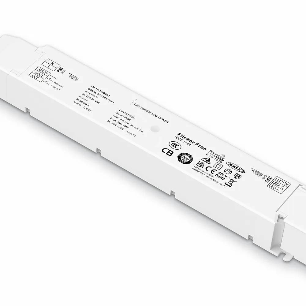Visokokakovosten gonilnik LED za zatemnitev STARWELL 75 W 12 V s konstantno napetostjo DALI je visoko zmogljiv napajalnik, zasnovan za profesionalne sisteme LED razsvetljave. Zagotavlja stabilen izhod 12 V DC z največjo močjo 75 W, kar zagotavlja zanesljivo delovanje za široko paleto nizkonapetostnih LED aplikacij, vključno s trakovi, znaki in dekorativno osvetlitvijo. Z vgrajeno združljivostjo zatemnitve DALI gonilnik LED omogoča natančen digitalni nadzor in brezhibno integracijo v omrežja pametne razsvetljave.