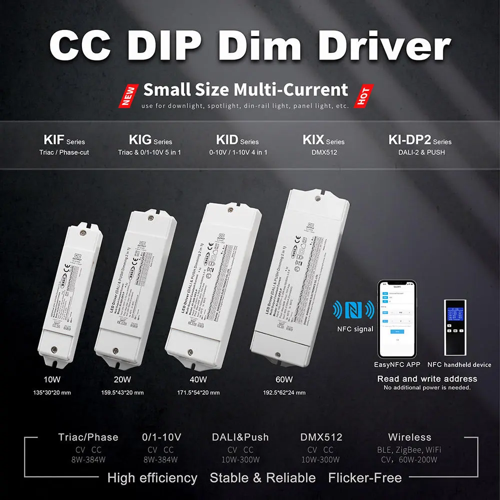 Zasnovan za zanesljivost in zmogljivost, zagotavlja stabilen izhodni tok za dosledno delovanje LED. Njegova zasnova 2 v 1 poenostavlja inventar in se prilagaja različnim projektnim potrebam – od avtomatiziranih pametnih zgradb do enostavnejših aplikacij za naknadno vgradnjo.