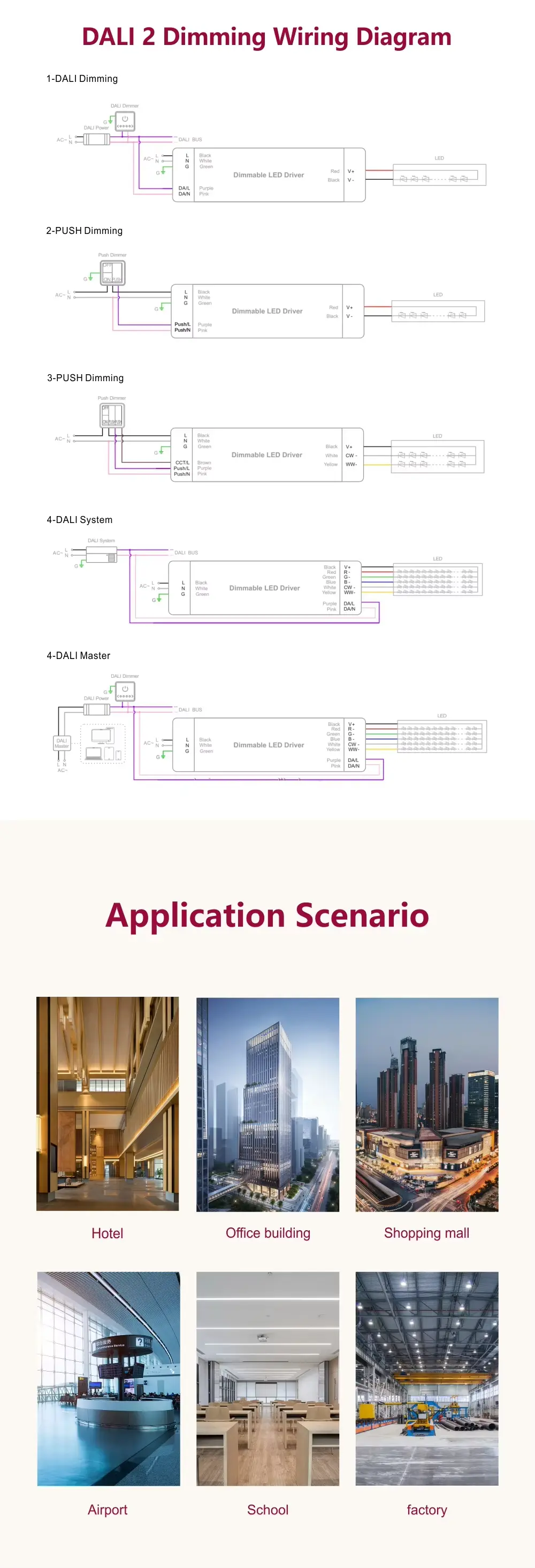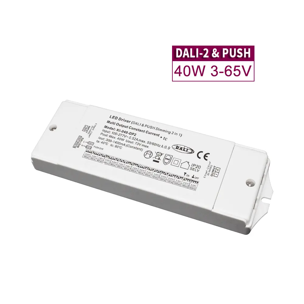 DALI Constant Current CCT Dimming Led Driver je primeren za vrhunske arhitekturne, komercialne in gostinske projekte, saj omogoča natančno nastavitev barvne temperature in intenzivnosti svetlobe iz enega samega gonilnika. DALI-2 DT8 zagotavlja interoperabilen nadzor prihodnosti za sofisticirane prizore in upravljanje z energijo, medtem ko možnost ročnega potisnega zatemnitve poenostavi nastavitve, kjer ni potreben namenski nadzorni sistem.