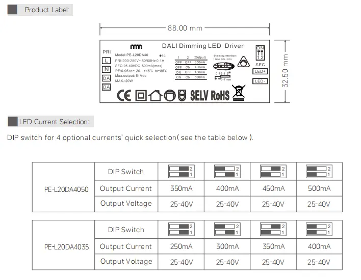 Starwell je vodilni kitajski gonilnik DALI s konstantnim tokom zatemnitve, dobavitelj in izvoznik. Naš PE-L20DA ima DALI DT6 načine zatemnitve in brez utripanja , uporabite DIP stikalo za spremembo funkcije zatemnitve, pri čemer se ne motite drug drugega in ne obstajate hkrati.