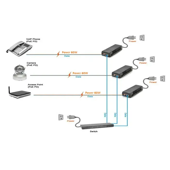 Zagotavlja do 60 W izhodne moči in v celoti podpira standarde IEEE 802.3bt/at/af. Napaja tako naprave z nizko porabo energije (15,4 W) kot opremo z visoko močjo (30 W/60 W), pokriva skoraj vse naprave, ki jih napaja Ethernet, in zagotavlja močno združljivost s PoE.