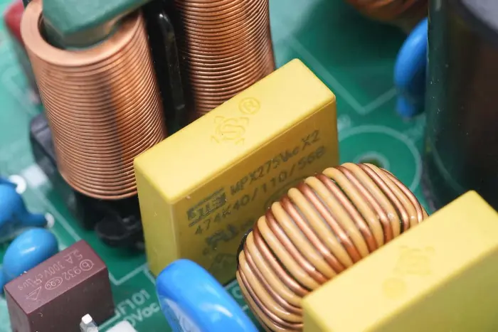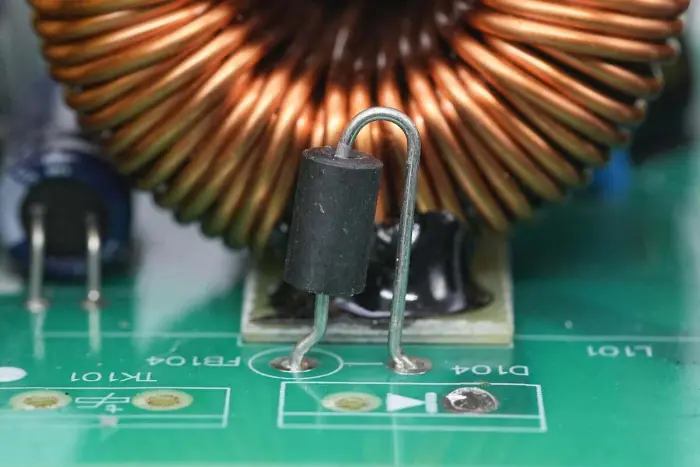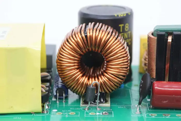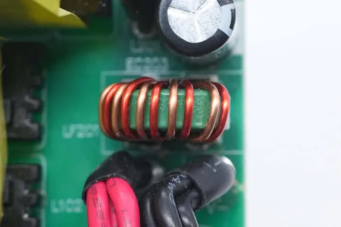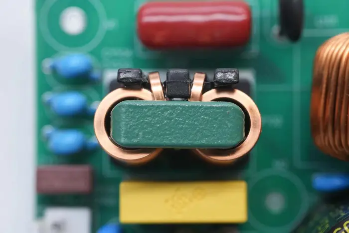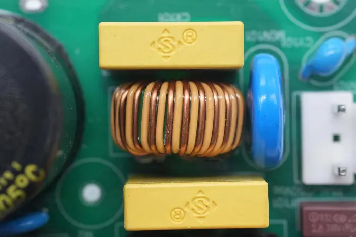 Bližnji posnetek induktorja izhodnega magnetnega obročnega filtra.