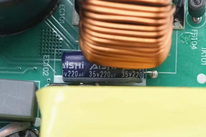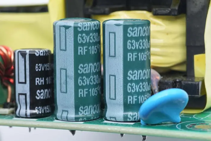 Kondenzatorji izhodnega filtra so proizvajalca Sancon (Nantong Sanxin), serije RF kondenzatorjev z dolgo življenjsko dobo, s specifikacijo 63 V 330 μF, dva vzporedno.