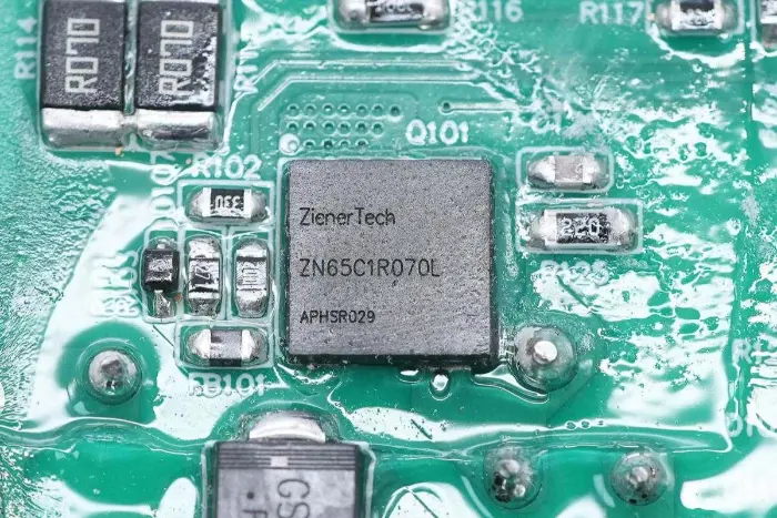 Stikalo LLC je proizvajalca ZenerTech, model ZN65C1R200L, stikalo GaN s strukturo Cascode z vzdržljivo napetostjo 700 V in prehodno vzdržljivo napetostjo 800 V, uporom pri vklopu 200 mΩ, podporo napetosti pogona vrat 20 V. Odlikuje ga nizek naboj vrat, kar učinkovito poenostavlja pogonsko vezje. Primerno za hitre polnilnike, komunikacijske napajalnike, podatkovne centre in aplikacije za razsvetljavo, pakirano v DFN8*8.