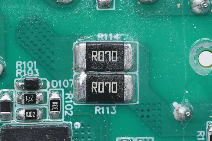 Dva upora 70 mΩ sta povezana vzporedno za zaznavanje toka stikala.