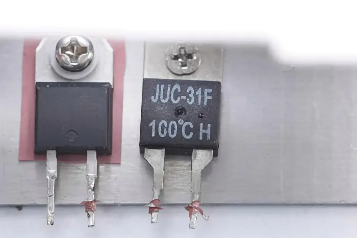 Usmerniški most, PFC usmerniška dioda in toplotno stikalo so pritrjeni na hladilno telo.