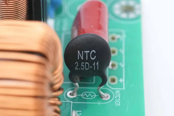NTC termistor ima oznako 2.5D-11, uporablja se za dušenje polnilnega toka visokonapetostnega elektrolitskega kondenzatorja.