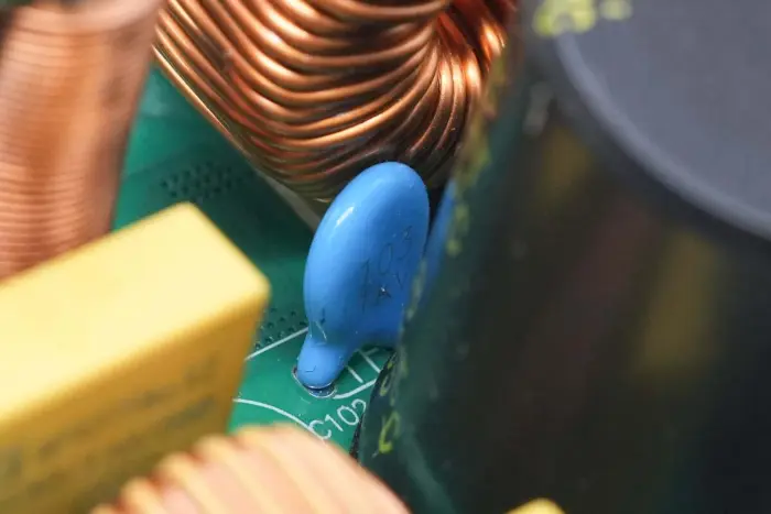 Keramični kondenzatorji so povezani vzporedno z elektrolitskimi kondenzatorji, s specifikacijo 0,01μF 1KV.