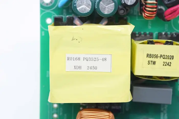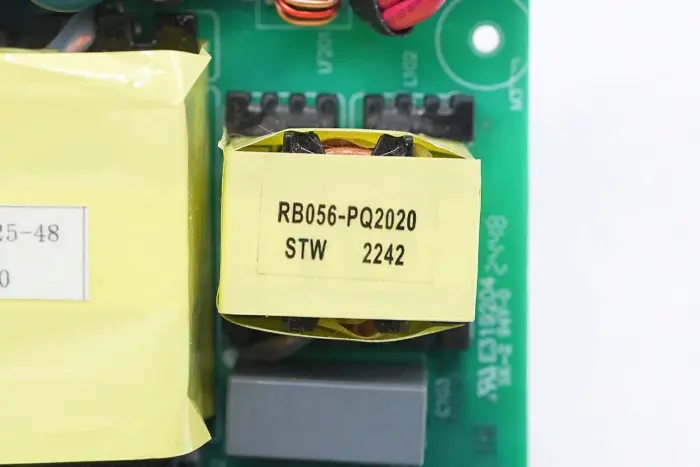 Transformator ima magnetno jedro PQ3525, označeno z modelom napajanja R0168.