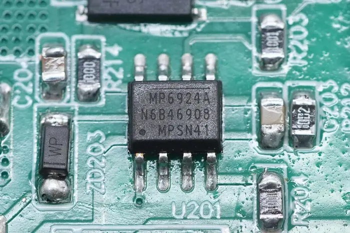 Krmilnik sinhronega usmernika je iz MPS, model MP6924A, krmilnik sinhronega usmernika LLC z močnejšimi funkcijami proti motnjam in hitrim izklopom, združljiv z načini CCM/DCM. MP6924A vključuje dva krmilnika sinhronega usmernika za usmerjevalne aplikacije dveh sekundarnih tuljav LLC, primerne za sinhronske usmerniške aplikacije LLC pretvornika, zapakirane v SOIC-8.