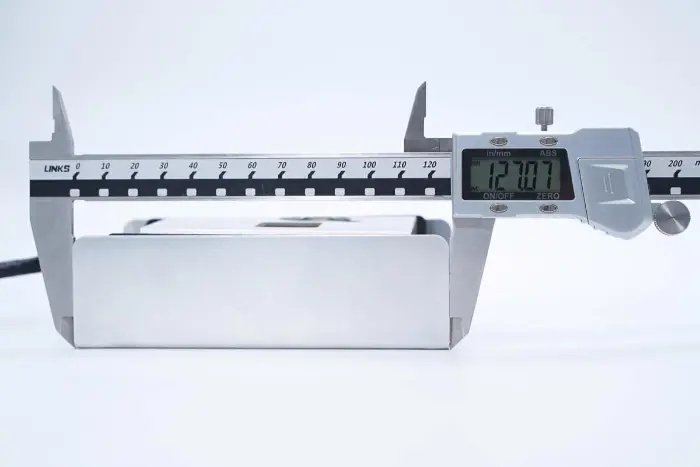 Dolžina napajalnega modula, merjena s pomično merilom, je približno 127,1 mm.