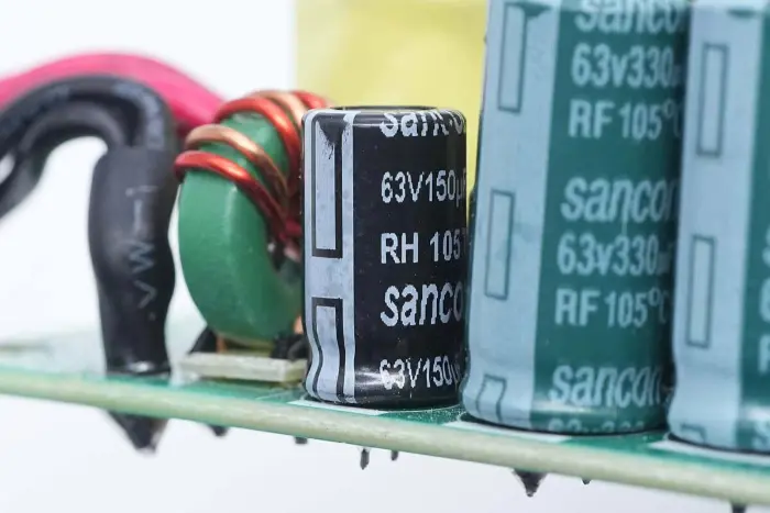 Drugi filtrirni kondenzator ima specifikacijo 63 V 150 μF.