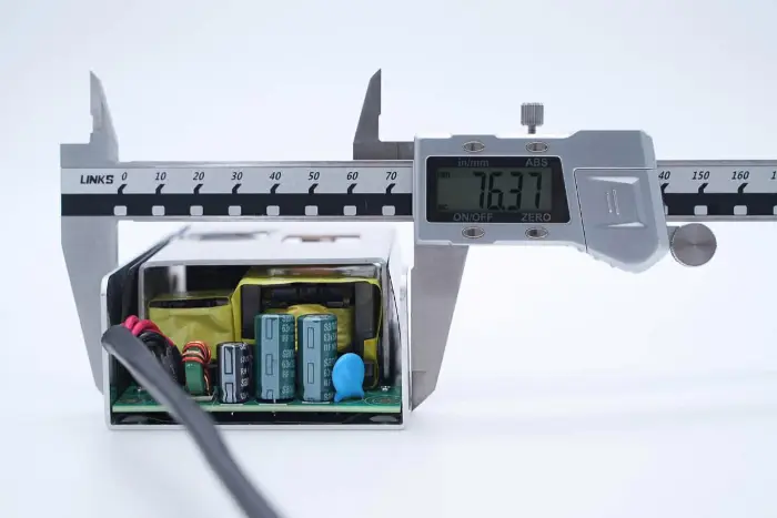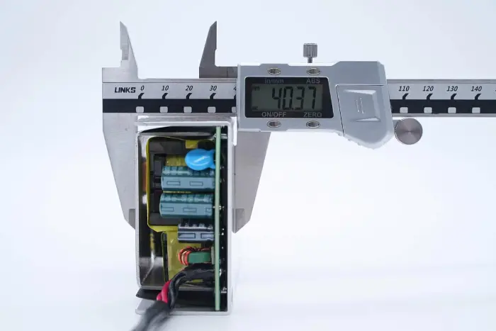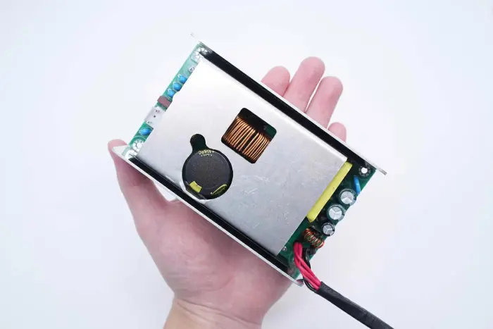 Napajalni modul STARWELL 300 W GaN ima ohišje iz aluminijeve zlitine. Sprednji del modula PCBA je opremljen s toplotnim odvodom iz aluminijeve zlitine, z izdolbenimi območji, ki ustrezajo visokonapetostnim filtrirnim kondenzatorjem in PFC ojačevalni induktor za zmanjšanje debeline.