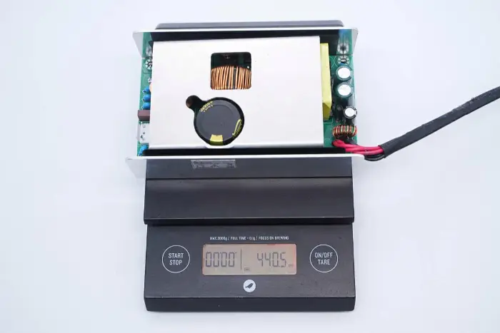 Na modulu PCBA je pokrit tudi hladilnik iz aluminijeve zlitine, napajalne naprave pa so pritrjene z vijaki.