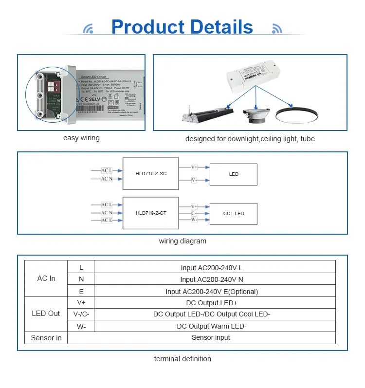 Tuya Zigbee Wireless Control 350mA CCT zatemnjen gonilnik LED je napajalni gonilnik LED s konstantnim tokom, zasnovan za nadzor nastavljive bele LED osvetlitve. Vključuje brezžični protokol Zigbee 3.0, ki uporabnikom omogoča prilagajanje svetlosti in barvne temperature prek pametnega telefona, tablice ali glasovnega pomočnika.