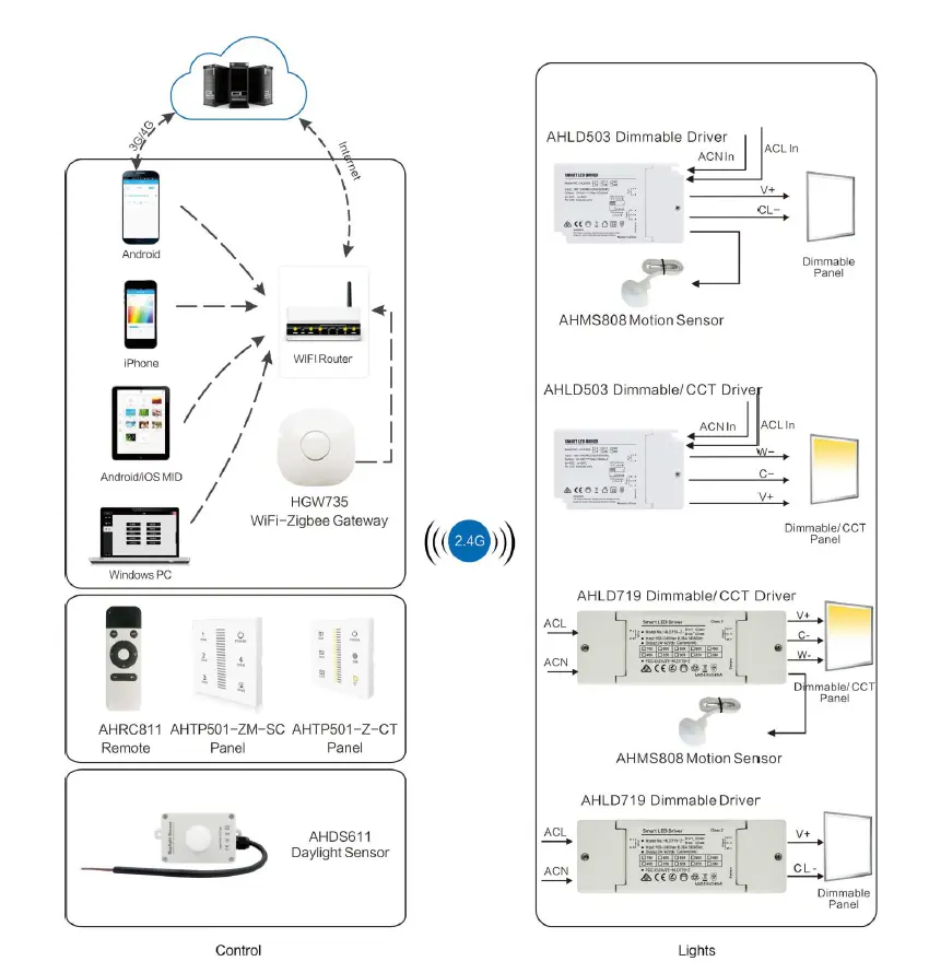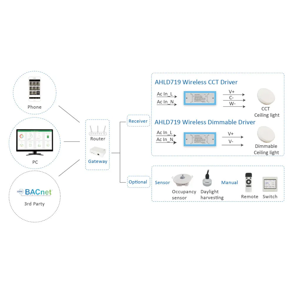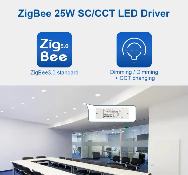 Gonilnik deluje v zapletenem omrežju Zigbee in se poveže s prehodom Zigbee, da omogoči funkcije pametne razsvetljave, kot so razporejanje, nadzor scene, skupinski nadzor in avtomatizacija. Ta tip gonilnika LED se običajno uporablja v sistemih za razsvetljavo pametnih domov, komercialnih razsvetljavah in okoljih za nadzor inteligentnih zgradb.